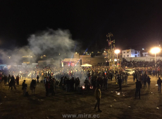 La noche también se realizó la quema del castillo y el lanzamiento de fuegos pirotécnicos, finalmente los participantes disfrutaron de la música del grupo mireño Barro y una orquesta de la vecina república de Colombia.