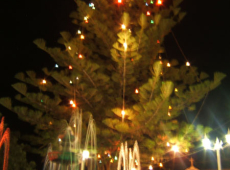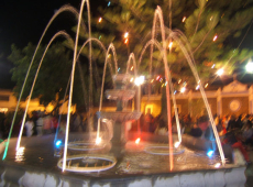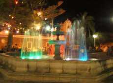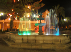 La tradicional decoración del parque Juan Montalvo, con su majestuoso árbol de navidad, se vio resaltada con la nueva pileta decorada con luces de colores.