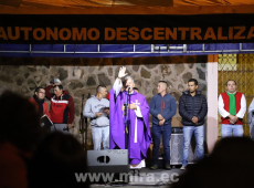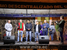Luego del pregón navideño se realizó la ceremonia donde el Alcalde Mira, Ing. Johnny Garrido dio un mensaje de paz y solidaridad, y además resaltó el espectacular trabajo realizado por la agrupación “Los Panas del Árbol” que cada año decoran la imponente araucaria que domina el parque central de Mira convirtiéndola en un hermoso árbol de navidad, en el acto se reconoció a esta agrupación entregándoles una placa a uno de sus líderes el Sr. Ronny Cazares, posteriormente se procedió a la bendición de los arreglos por parte del párroco de Mira, padre Salvador Quiroz.