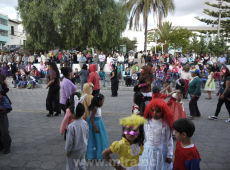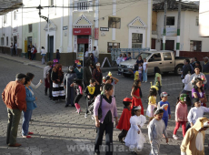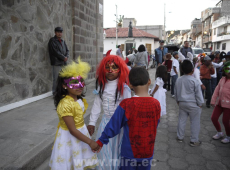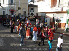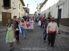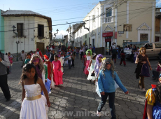 Acompañados de la banda Los Satélites recorrieron las calles convocando a la ciudadanía a participar del evento. En el parque Juan Montalvo se realizaron los tradicionales bailes en largas columnas donde los niños demostraron su amor por esta tradición.